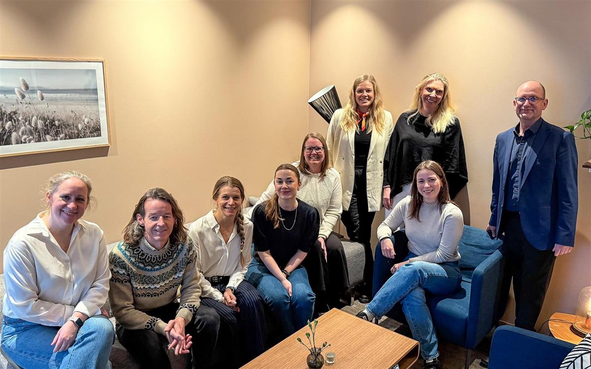 Akershus fylkeskommune og Asker kommune på besøk hos 13-20 i Bærum sist tirsdag. F.v: Siri Nilssen, Ragnvald Kjuus, Ida Lindtveit Røse, Ida Vesteraas, Hege Merete Borgen Andersen, Olga Marie Brathaug Salen, Karianne Torgersen Rendal, Anne Elisabeth Lønningen, Jon Arve Eide.
