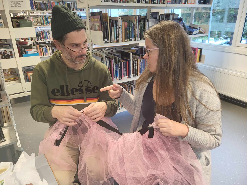 Håndarbeid i form av blant annet perling, søm og strikking var en populær aktivitet. Her får Porang undervisning i søm av Kjerstin.
