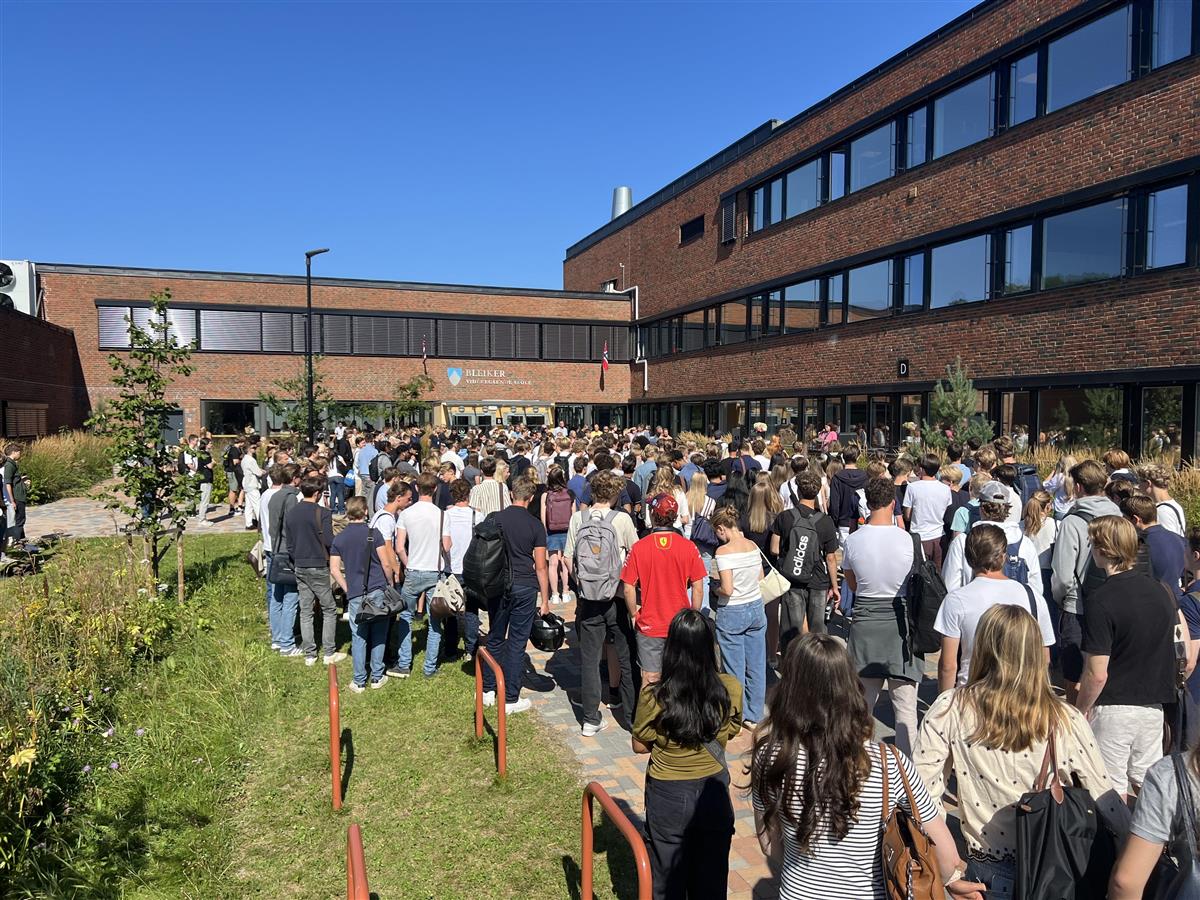 Det var fullt i skolegården da skolens nye rektor Cathrine Kittilsen Zandjani ønsket velkommen til alle elevene med dikt at Trygve Skaug. Fordelt utover litt ulike tidspunkter på dagen møtte de både skolens nye rektor, sine nye kontaktlærere og nye medelever.