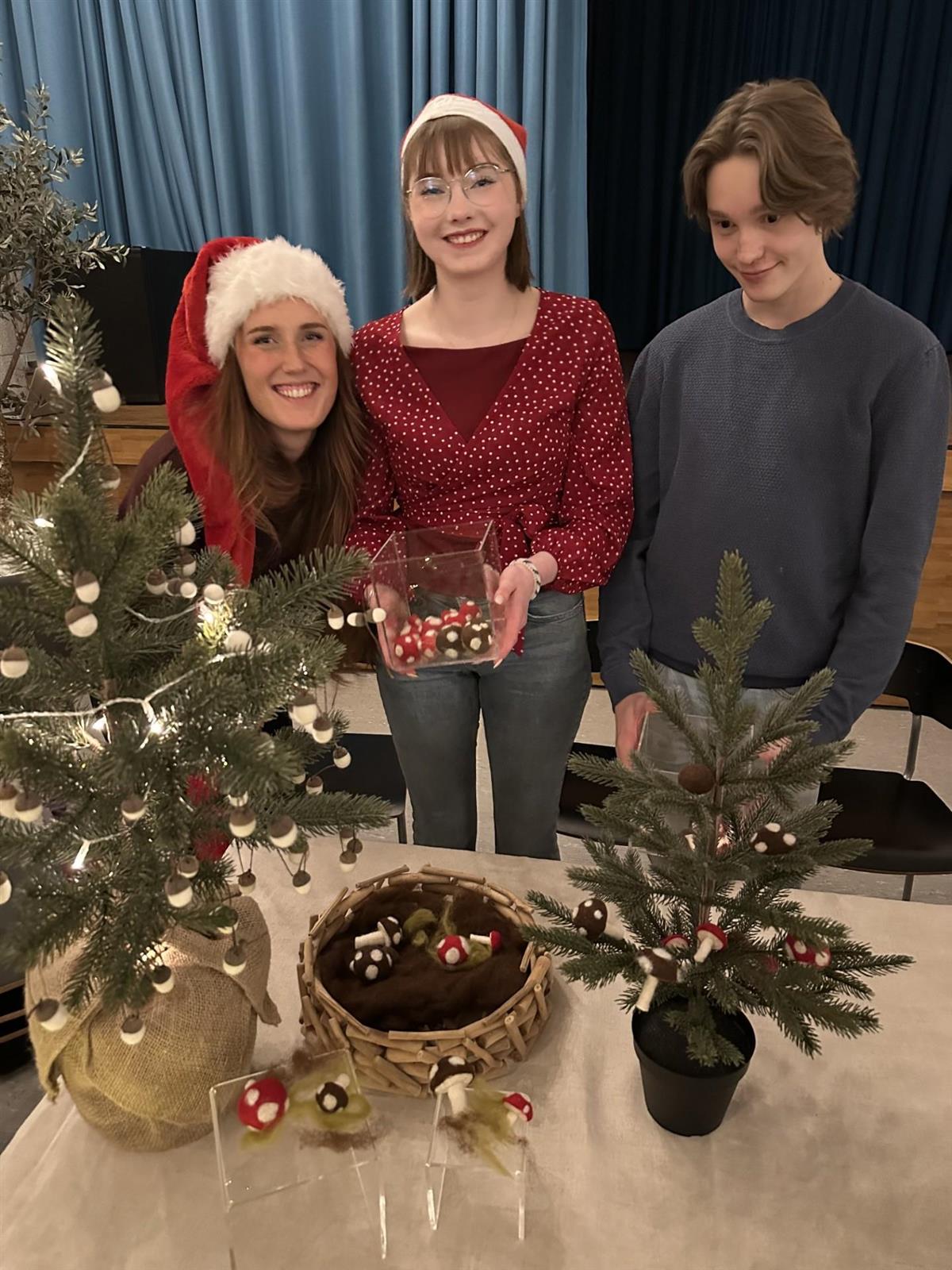 Elevene inviterer deg til en stemningsfull ettermiddag fylt med håndlagde produkter, kreativt design og bærekraftige løsninger. Her finner du alt fra mosekranser og lyslykter til striesekk-produkter, frest juletrepynt og styling til julebordet – alt laget med kjærlighet og omtanke av skolens elever.