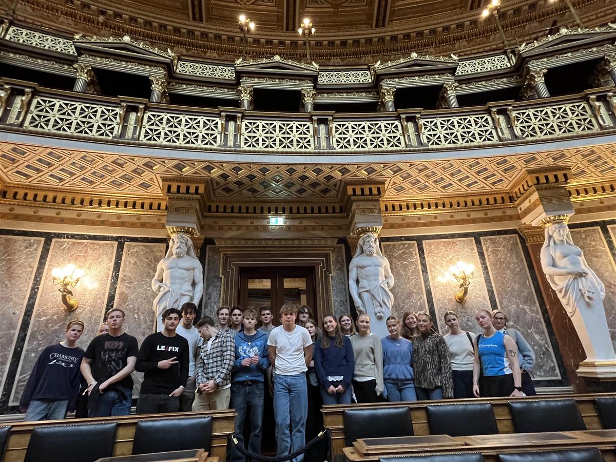 Gruppa har blant annet lært om demokratiet i Østerrike og besøkt parlamentet. En interaktiv utstilling ga kunnskap om hvordan Østerrike fungerer som land, og så fikk de se det gamle parlamentet, fra da Østerrike først ble republikk. Gruppa fikk undersøke rommet der Bundesrat samles, altså folkevalgte fra de forskjellige fylkene i Østerrike, og der regjeringen og alle de andre folkevalgte sitter i dag. Ganske imponerende bygg.