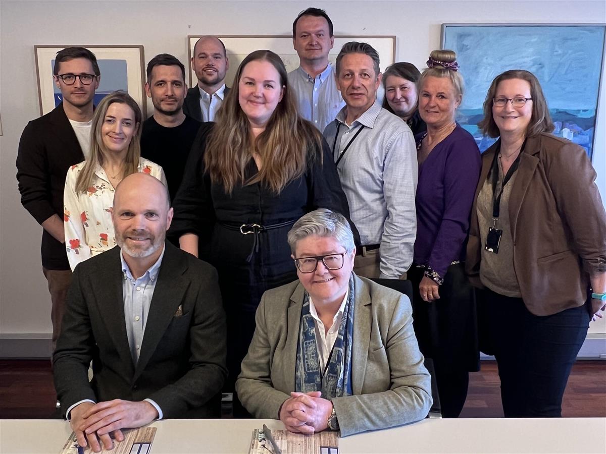 Foran: daglig leder Anders Vestre (Vedal) og fylkesrådsleder Anette Marie Solli (AFK). Bak, fra venstre: Christopher Simonsen (Vedal), Oda Wood Hofgaard (Vedal) prosjektleder Magnus Johnsen (AFK), Sondre Gran (Vedal), fylkesråd Tonje Lavik Pederssen (AFK), prosjektleder Bojan Tesic (AFK), avdelingsleder Christian Asbjørn Andvik (AFK), seksjonsleder Mona Øksnes, fylkesdirektør Hilde Kjøvfjell (AFK), seksjonsleder Marianne Carlsen (AFK)