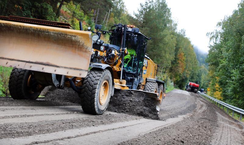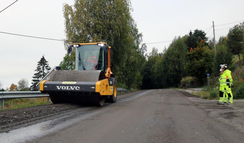 Arbeid med asfaltering på fylkesvei 177.