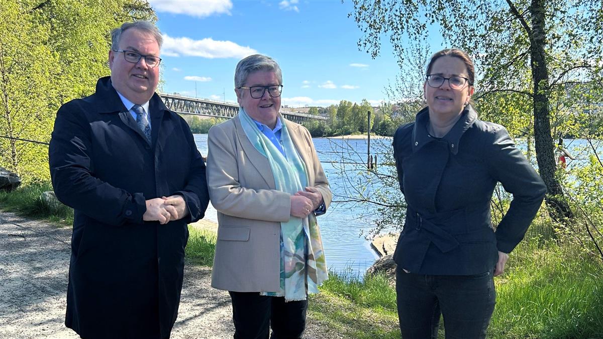 Fra venstre: ordfører i Lillestrøm kommune, Kjartan Berland (H), fylkesrådsleder Anette Marie Solli (H) og fylkesråd for plan, kulturminner, klima og miljø Solveig Schytz (V)