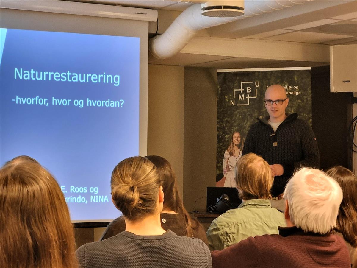 Ruben Erik Roos fra Norsk institutt for naturforskning (NINA) orienterte om naturkartleggingen de har gjort i Ås kommune, på en åpen fagkveld 23. februar.
