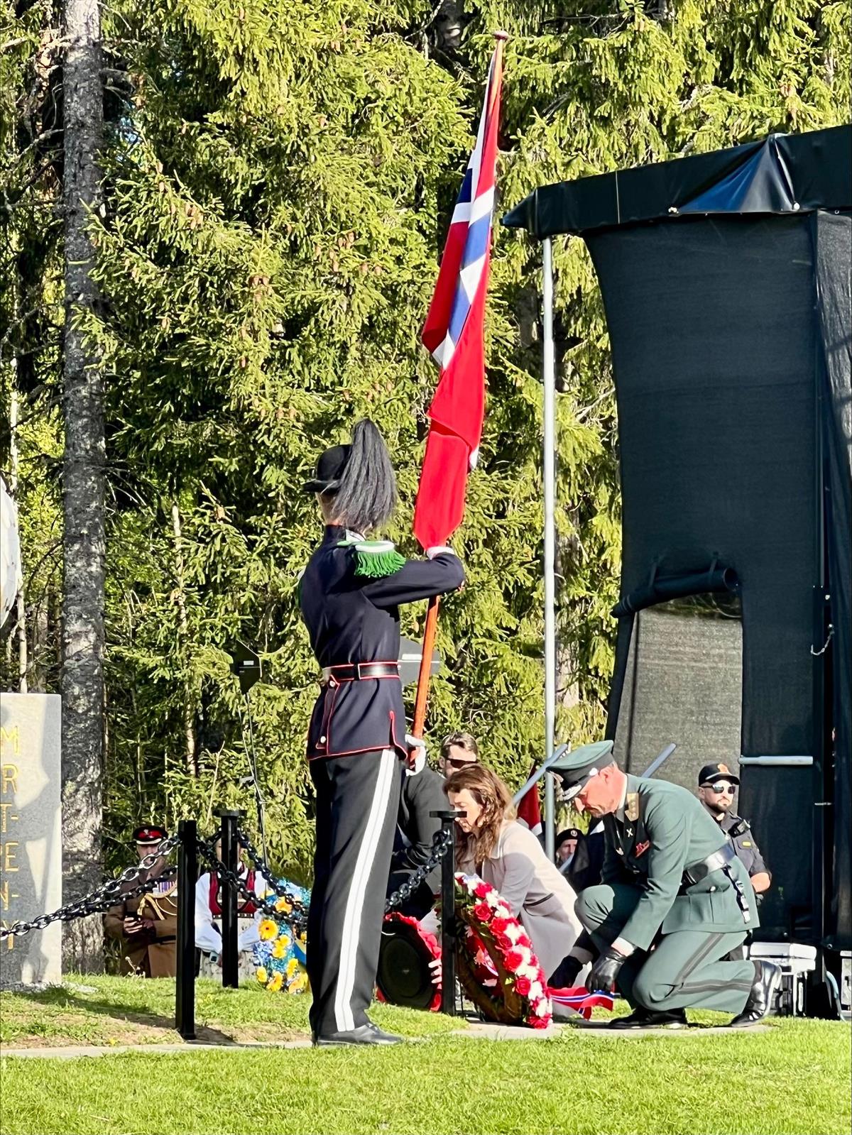 Mange publikummere var møtt opp for å se seremonien, og mange prominente gjester var tilstede. I tillegg til Kongen og Kronprinsen, var også stortingspresidenten, arbeids- og inkluderingsministeren, statsforvalter, ordfører, representanter fra Forsvaret og både Den britiske og Den ukrainske ambassaden i Norge tilstede. De to sistnevnte var der for å legge ned krans ved krigsminnesmerket sammen med Kronprinsen.