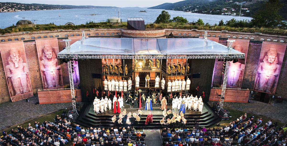 mennesker som ser på opera utendørs ved Oscarsborg - Klikk for stort bildeOscarsborgoperaen Dag Jenssen/VisitGreaterOslo