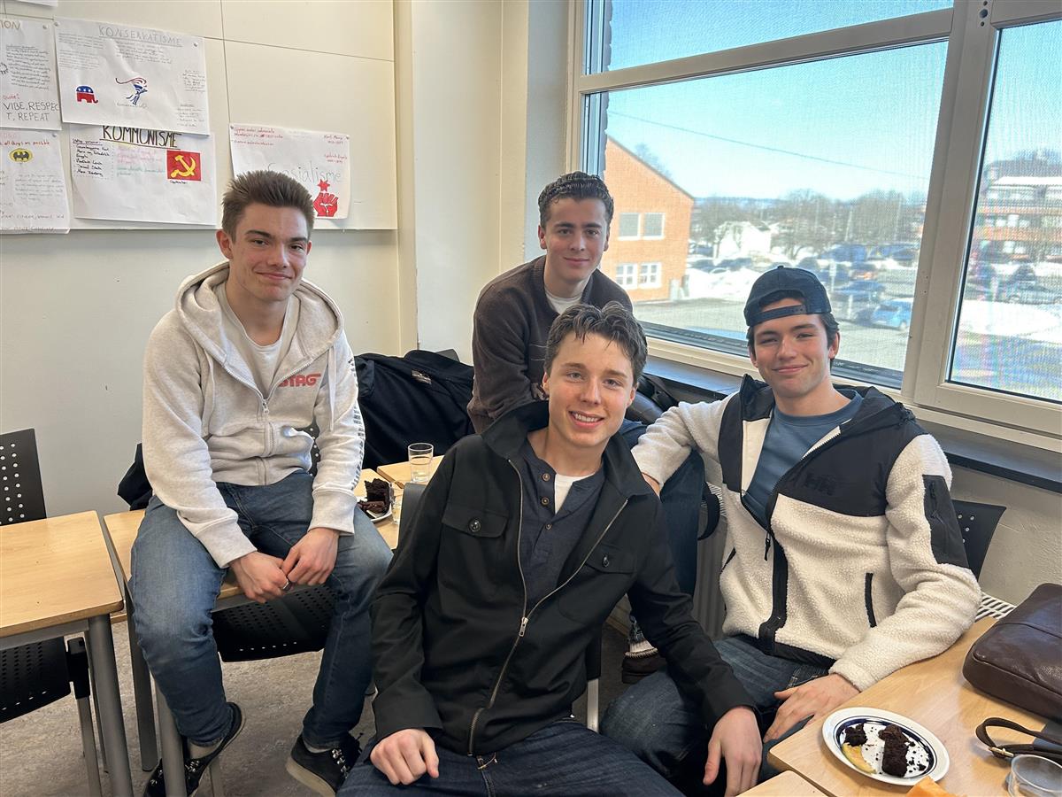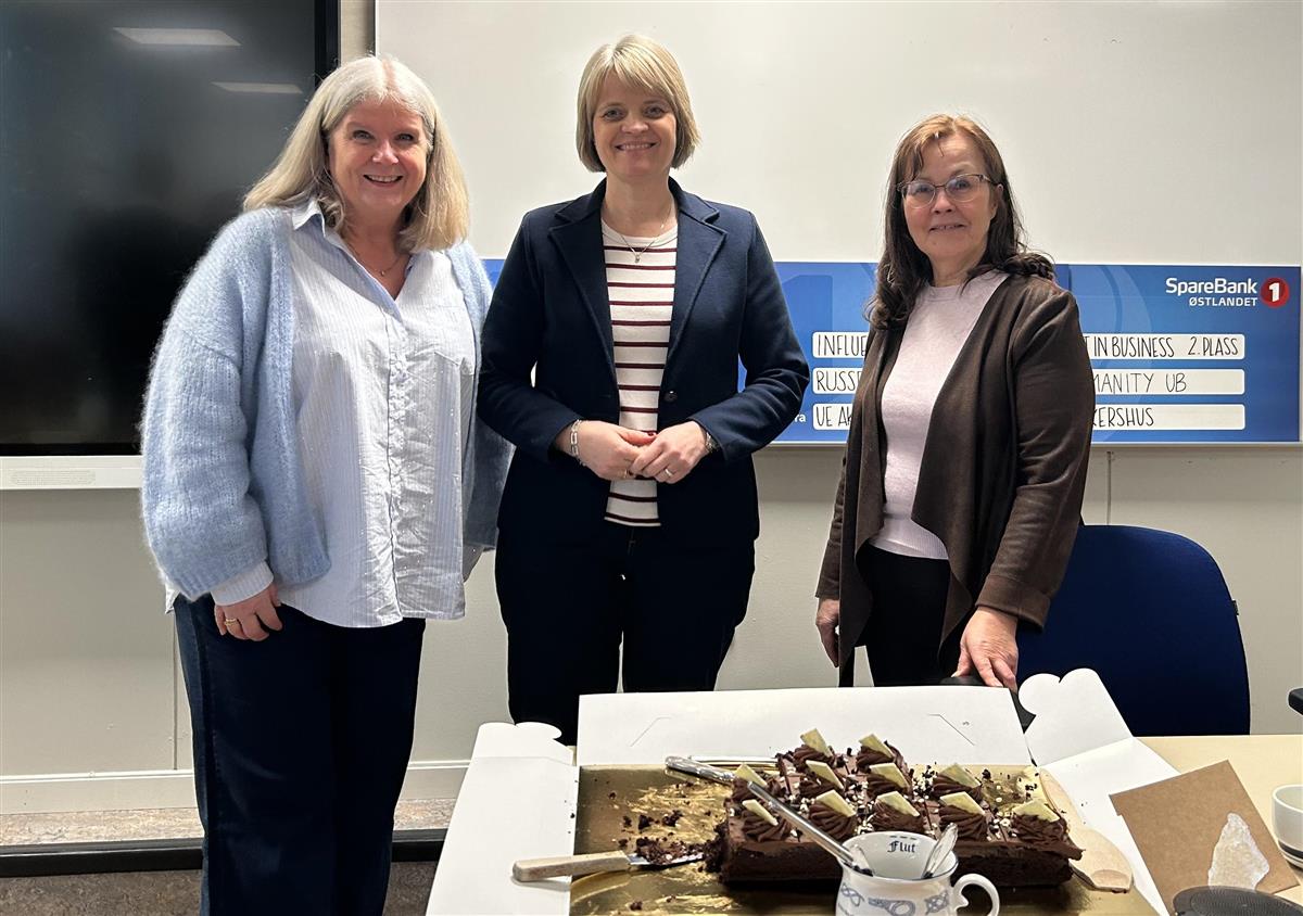 Ledelsen kom for å gratulere klassen, og hadde med seg kake.