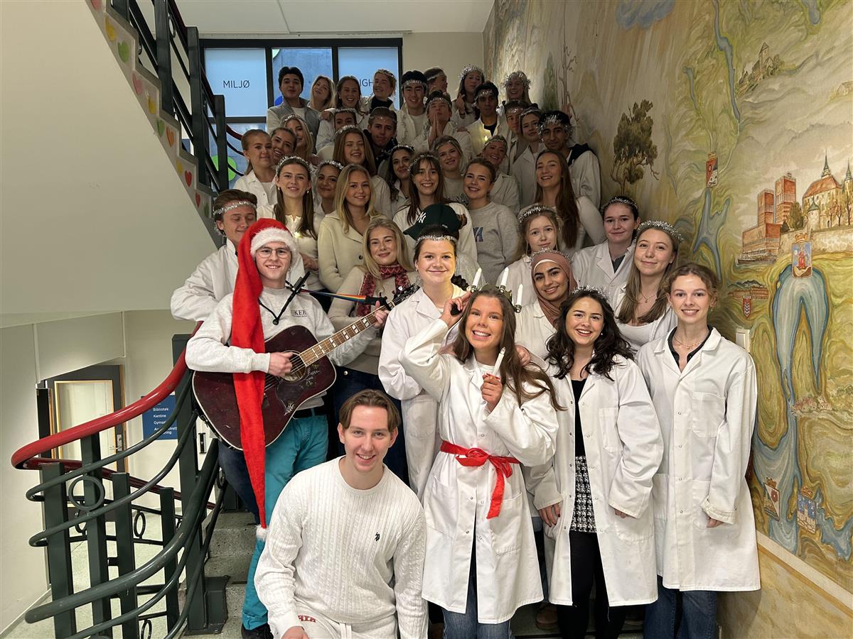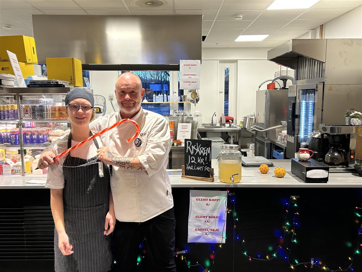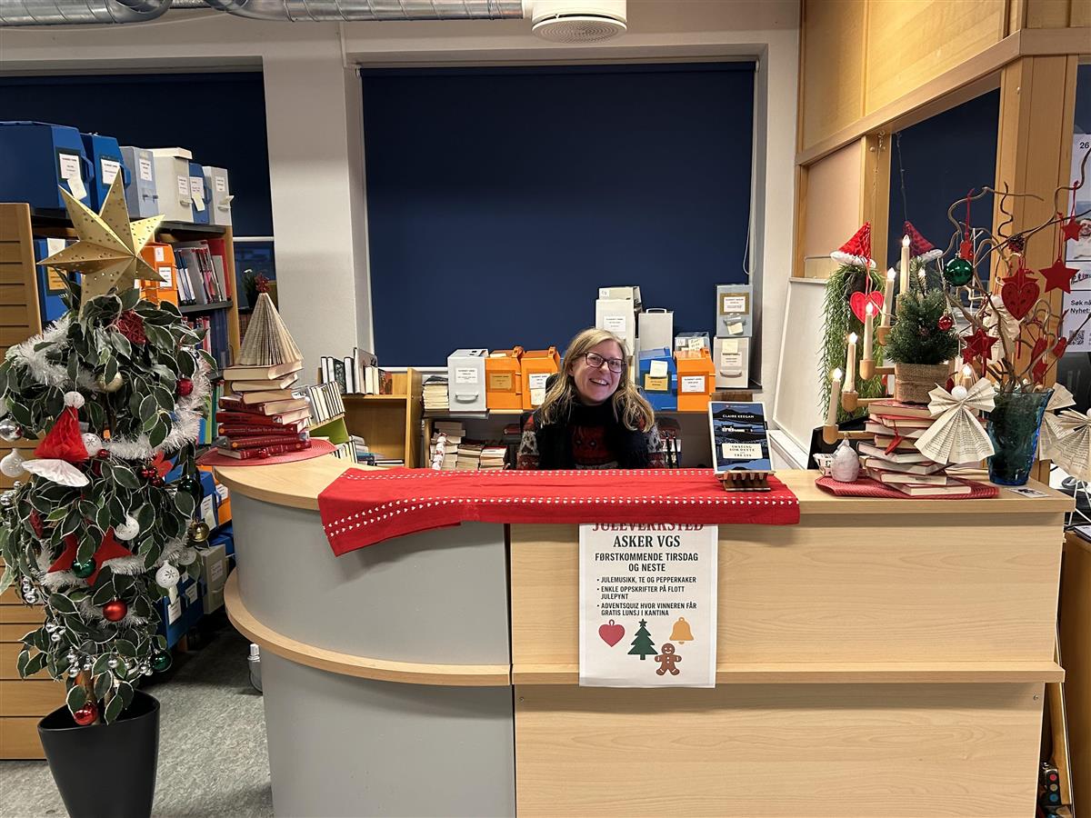 God jul fra oss på Asker vgsDe siste to ukene har det vært stigende julestemning på Asker vgs. Elevrådet har daglig levert en veldig morsom adventskalender på skolens Instagram-kanal. Kantine-Kristian har disket opp med riskrem og pyntet med nisser og lys. Biblioteket har arrangert juleverksted, og i dag gikk en samlet flokk elever fra ulike trinn Lucia-tog gjennom klasserommene. Med juleferien rett rundt hjørnet vil vi gjerne dele disse bildene med dere og ønsker alle en riktig god jul. Hvert år samles elever fra hele skolen for å gå lucia-tog gjennom klasserommene. Alltid en vinner for julestemningen! Anders Grønning Denne duoen serverte juleinspirerte godsaker i kantina gjennom desember. Anders Grønning Klementiner og appelsiner er like vanlig i jula som nisser, og kanine-Kristian fikset begge deler. Anders Grønning Bibliotekar Joanna har bidratt til å skape julestemning fra skranken gjennom desember. Anders Grønning Det årlige juleverkstedet for elever og lærere er svært populært! Anders Grønning Publisert av Anders Grønning Publisert 12.12.2025 14.20 Sist endret 12.12.2025 14.38