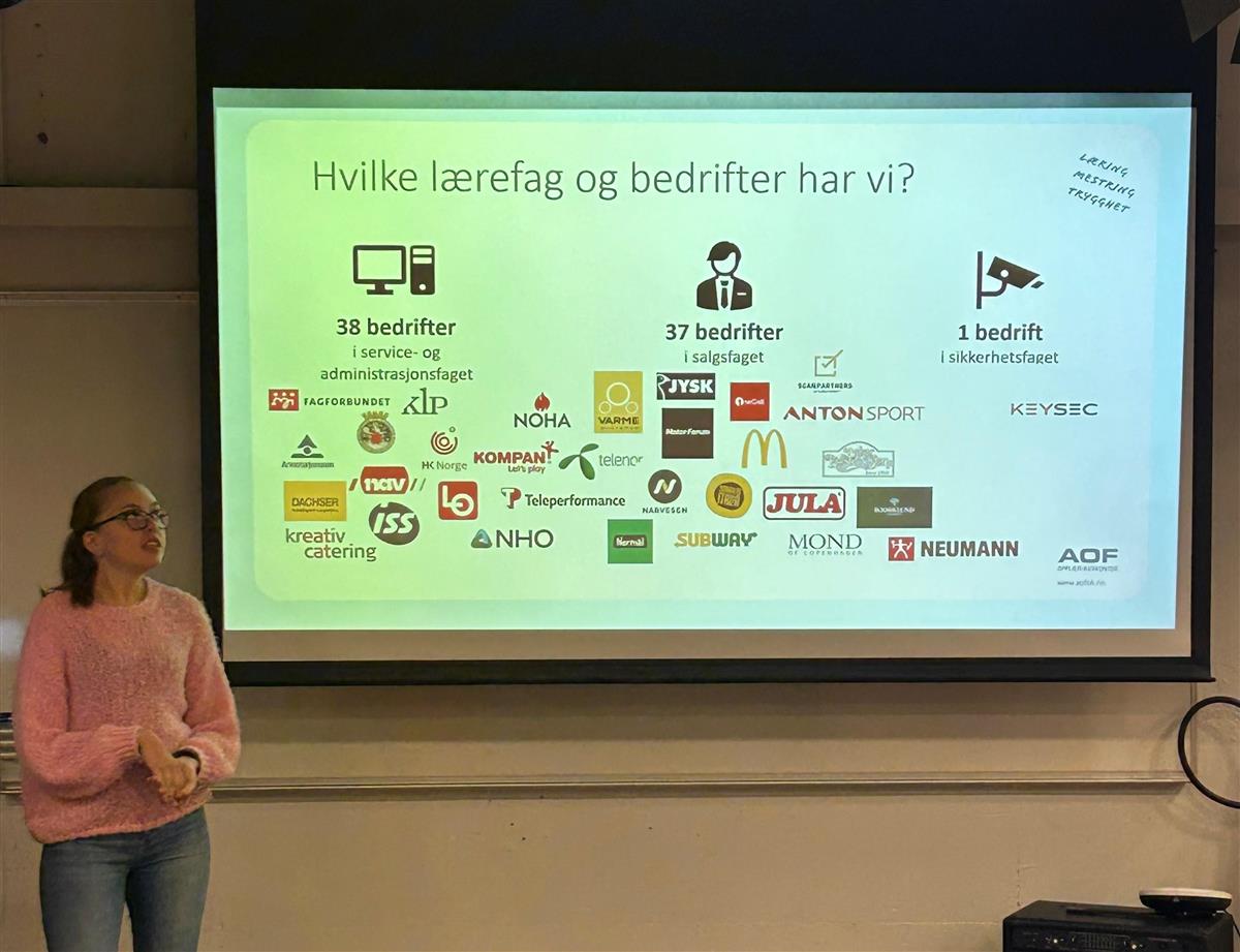 Onsdag 27. august fikk elevene på Vg2 Salg og reiseliv og Vg2 Service, sikkerhet og administrasjon besøk av flere ulike opplæringskontor fra deres bransjer. Elevene fikk høre inspirerende foredrag om mulighetene som ligger i å velge lærlingtid. De fikk også informasjon om utveksling, samt presentasjoner av samarbeidsbedrifter.