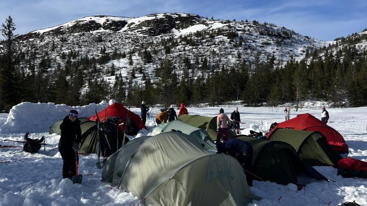 Elevene fikk utnyttet det siste skiføret på Nord-Mangen, og overnattet i telt på Kjølen.