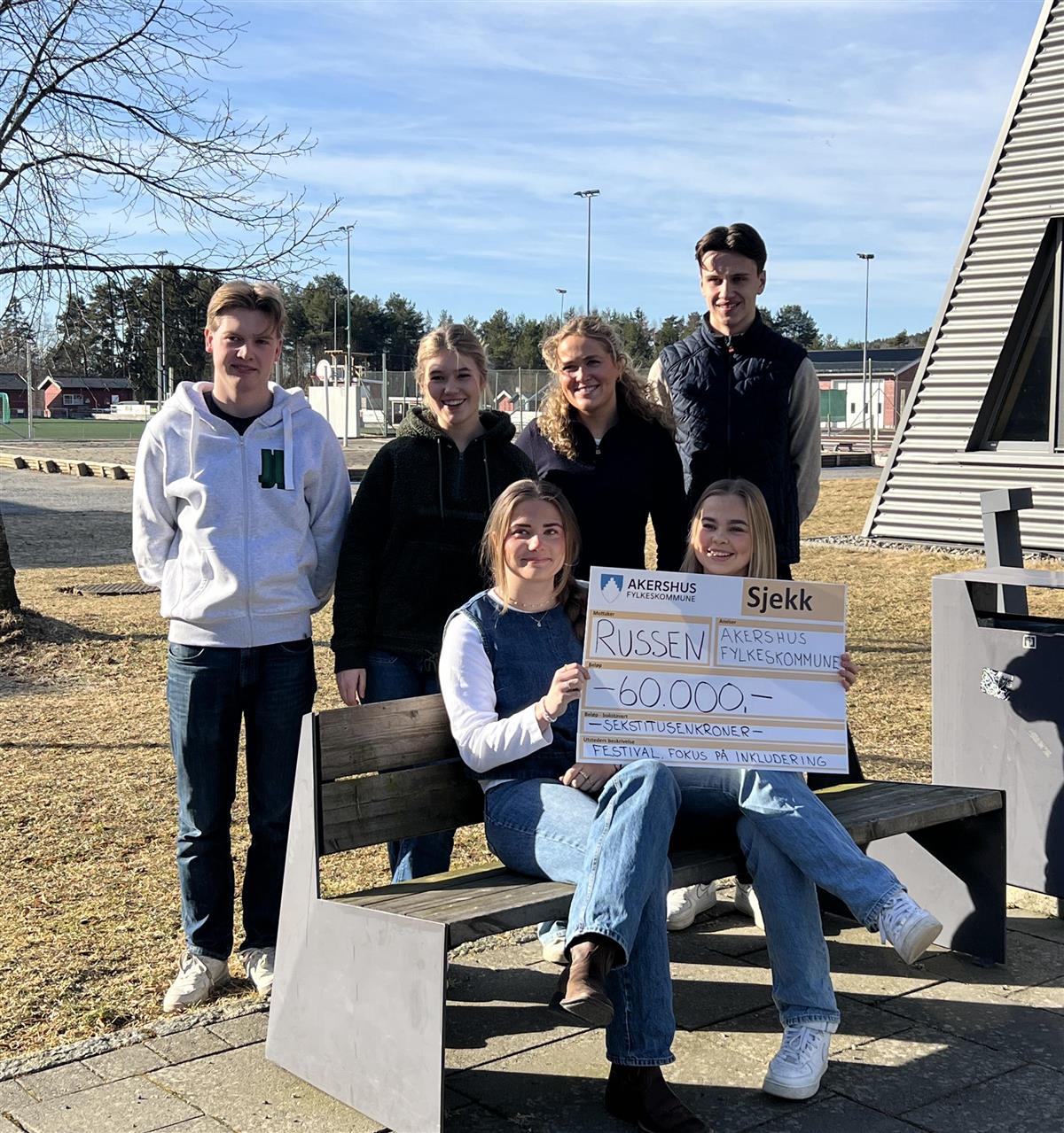 Elevene i avgangsstyret ved Kjelle vgs og BVS mottok sjekken på 60 000 kronber fra fylkeskommunen.