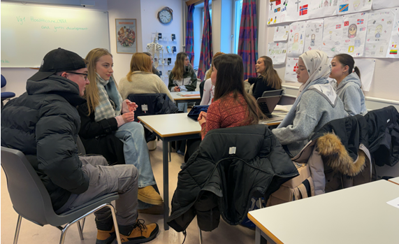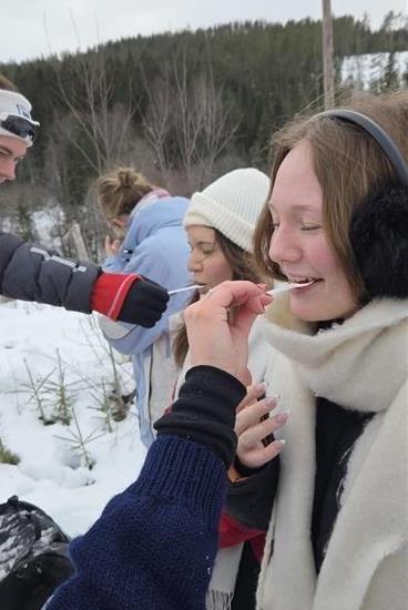 Onsdags morgen fortsatte vi med kunstprosjektet og vi fikk også muligheten til å lage våre egne tegninger i kjent Munch-stil. Etter midttimen var vi klare for skogtur sammen med 3IDA. De hadde ansvar for opplegget og hadde laget en natursti med forskjellige aktiviteter. På postene skulle vi blant annet smake på norsk mat i blinde og gå på miniski.