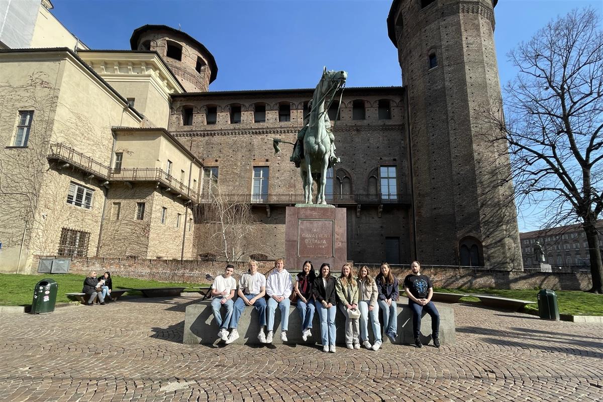 I mars reiste åtte elever fra kjemi 2 og biologi 2 til Torino i Italia, for å besøke Erasmus-samarbeidsskolen vår, Itis Luigi Casale Torino. Vi startet reisen fra Gardermoen 08:00 på mandag, og brukte 3 timer på fly til Milano (Malpensa) og 2 timer i buss til hotellet. Etter vi hadde sjekket inn på hotellet, dro vi elevene og våre to lærere på middag sammen.