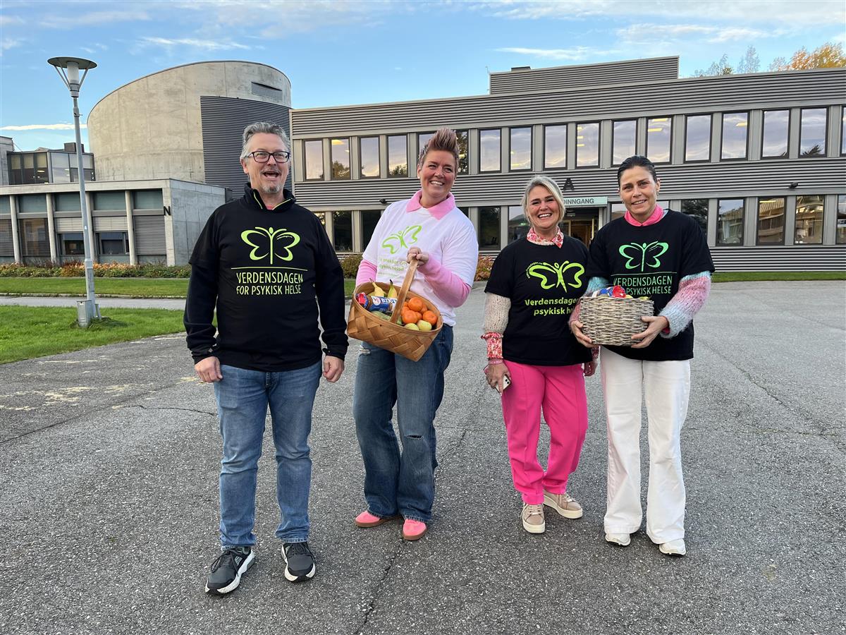 Jon Elling, Janne, Unni og Cecilie fra Elevtjenesten ønsket eleven velkommen på morgenen.Det har vært et mål at temaet Livsmestring skulle gå som en rød tråd gjennom skoledagene. Det har foregått klassebygging, midttimeaktiviteter, BVS-ligaen ble sparket i gang og det har vært RØRE- aktiviteter i timene, i tillegg til mye annet. Det begynte allerede fredag 10. oktober, hvor vi markerte Verdensdagen for psykisk helse.