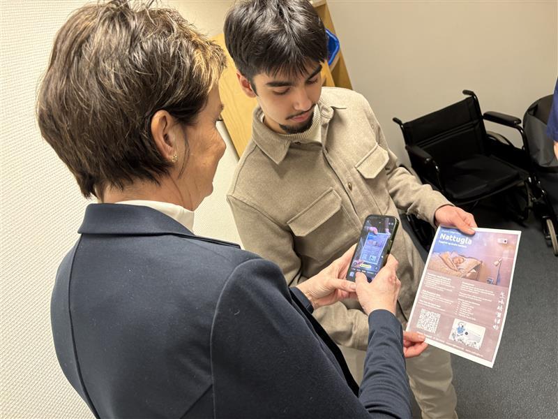 Eidsvolls ordfører Nina Kristengård var også tilstede og fikk innføring av en elev i nattugla systemet som passer på beboerne om natta.