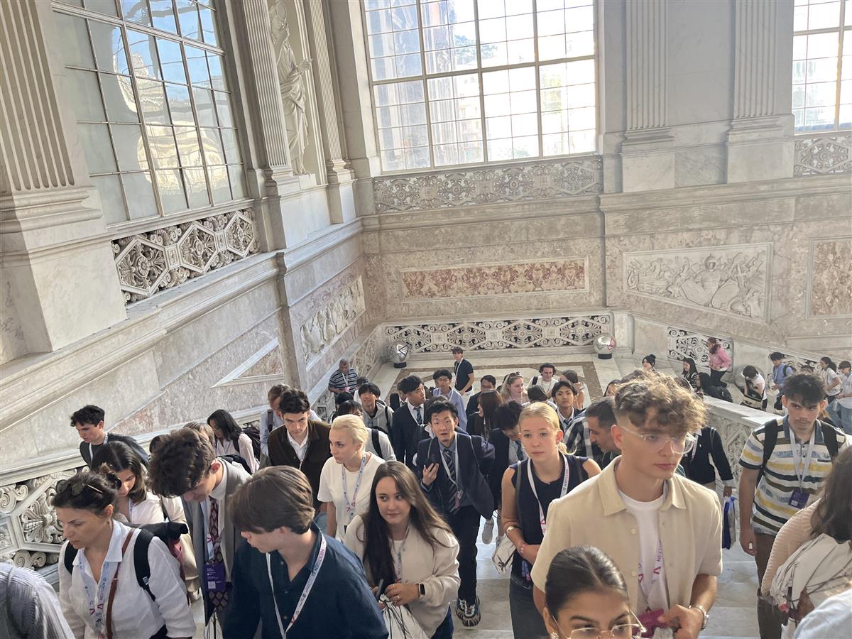 Invitasjonen kom fra det italienske utdanningsdepartementet, og hele reisen ble sponset av italienske myndigheter. Konferansen samlet 1 500 elever, lærere og skoleledere fra hele verden, og ble i tillegg direktesendt til italienske skoler, slik at 6 000 deltakere fulgte konferansen totalt. Blant de fysiske deltakerne var 40 internasjonale delegasjoner, hver bestående av én lærer og to elever, samt over tusen italienske elever og lærere. Fra Frogn deltok elevene Malin Wessel og Daniel Kasparaitis, samt lærer Elin Skipnes.