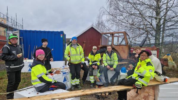 Byggeprosjektet til Vg1 Bygg-og anleggsteknikk (1BAA) reiser seg, og i dag var dagen for å få takstolene og dragere på plass!