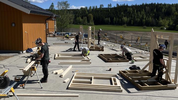 Byggeprosjektet til Vg1 Bygg-og anleggsteknikk (1BAA) reiser seg, og i dag var dagen for å få takstolene og dragere på plass!