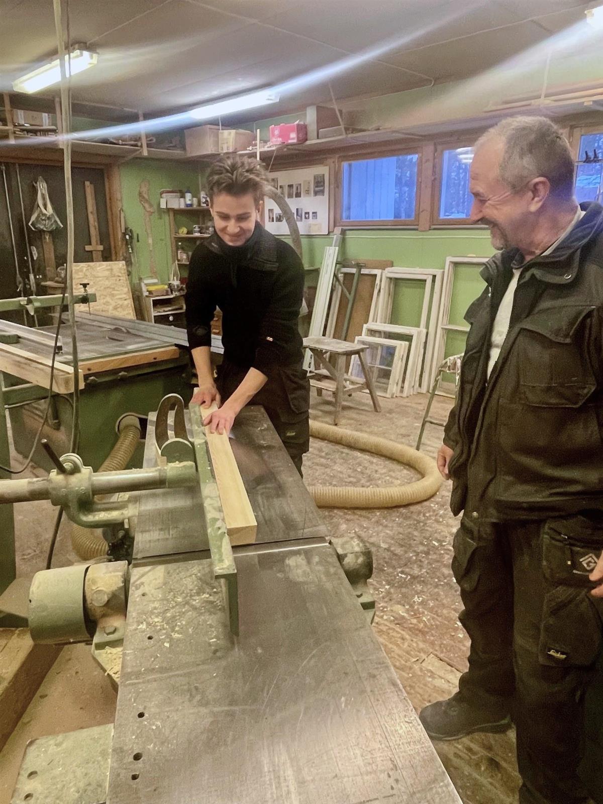 Per Ivar Moen, daglig leder i Grendebygg, sier at de setter pris på at Vetle og andre ungdommer ønsker å lære seg håndverket.