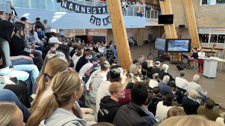 Nannestad markerte skolens 20-årsjubileum onsdag 19. mars i skolens fellesareal Fugleberget. Arrangementet var for skolens elever, ansatte og noen inviterte gjester, deriblant flere tidligere rektorer og kommune- og fylkespolitikere.
