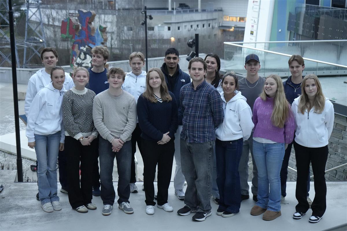 Ungdommens fylkesråd 2026: Bak fra venstre: Linus Lerø, Vetle Walseth Gran, Einar Holt, Baseer Ahmad, Martine Jalkeng-Keown, Markus Stene Olsen, Nikolai Ødegård. Foran fra venstre: Lilja Tiller Sikkeland, Guro Rueness-Andersen, Trygve Aleksander Pedersen, Lina Wille-Johansen, Sander Hagesveen, Tiam Rajabzadeh, Elsa Marie Eriksrud, Ona Linnea Andersen