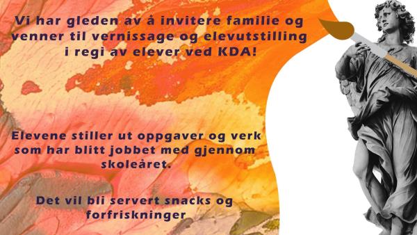 Vi har gleden av å invitere familie og venner til vernissage og elevutstilling i regi av elever ved KDA