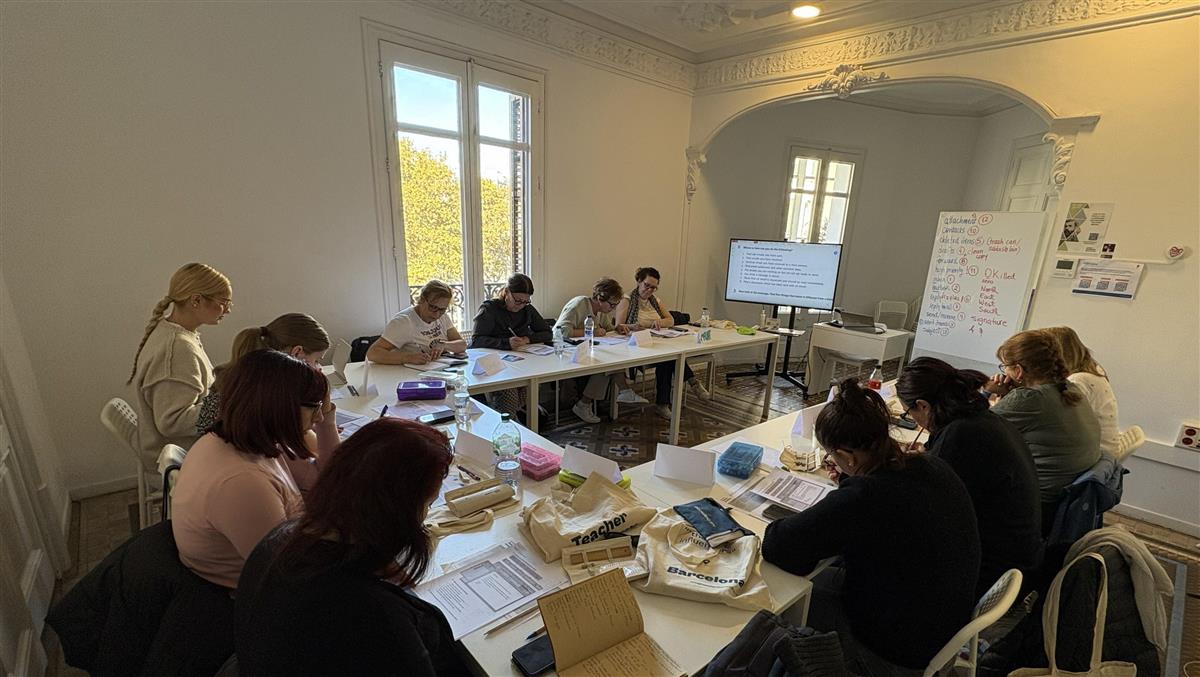Det var totalt 12 deltagere fordelt fra 4 land som deltok. Deltakerne holdt presentasjon om skolen og arbeidsoppgaver, og det var interessant å se hvordan de ulike nasjonene hadde arbeidsoppgaver fordelt på forskjellig vis . Undervisningen gikk i stor grad på dialog, lytte- og skriveøvelser, grammatikk og å lære om jobbrelaterte temaer, alt på engelsk. Det ble også tid til å oppleve mye av Barcelona som by.