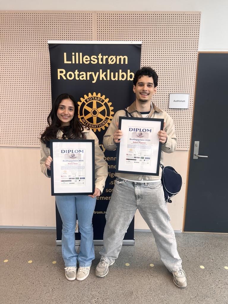 Vi gratulerer Andrei (1. plass) og Wania (2.plass) som har utmerket seg som kullets beste realfagselever på Skedsmo vgs! Det fikk utdelt diplom og pengepremier.