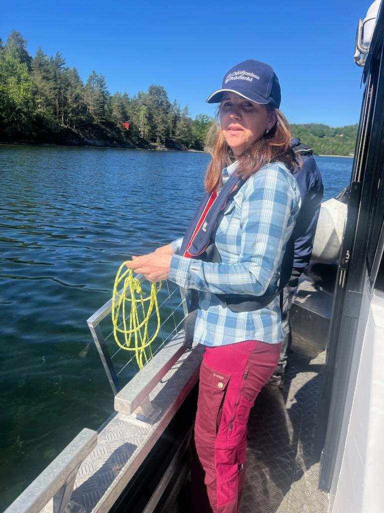 Solveig Schytz (V), fylkesråd for plan, kulturminner klima og miljø. Her fra en innsamling av data om lurv i Oslofjorden.