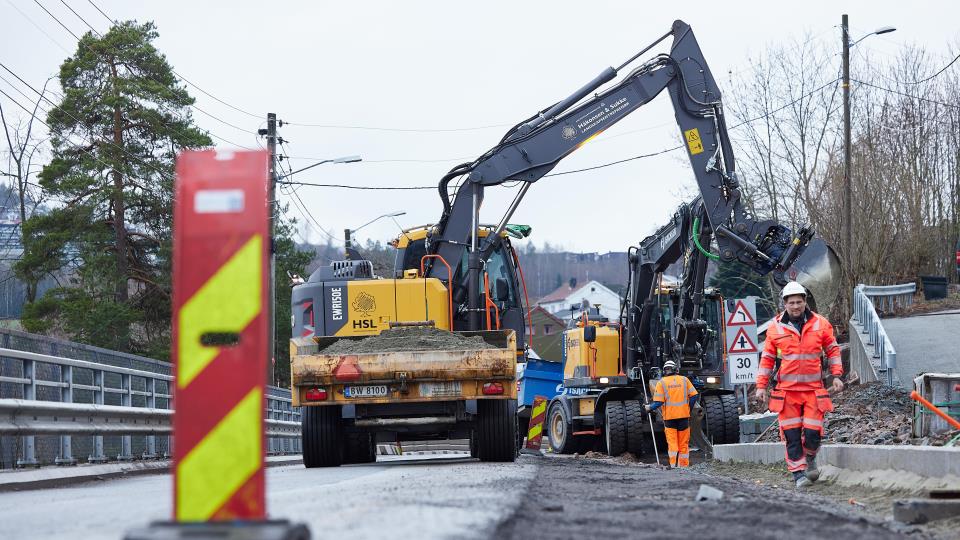 Tok første spadetak for gang- og sykkelvei langs Griniveien Håkon Snortheim (H), fylkesråd for samferdsel, markerte mandag 29. september byggestart for 1,6 kilometer gang- og sykkelvei langs Griniveien i Bærum.