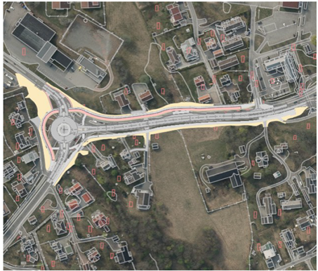 Det skal bygges fem langsgående støyskjermer og to eksisterende støyskjermer skal rives.